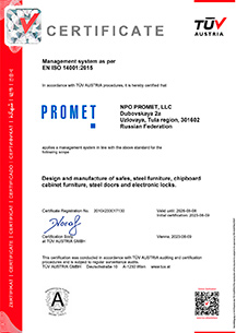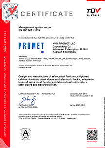 NPO Promet LLC is the largest Russian manufacturer and distributor of safes, steel office, medical and industrial furniture, steel doors, automatic storage systems and electronic locks.